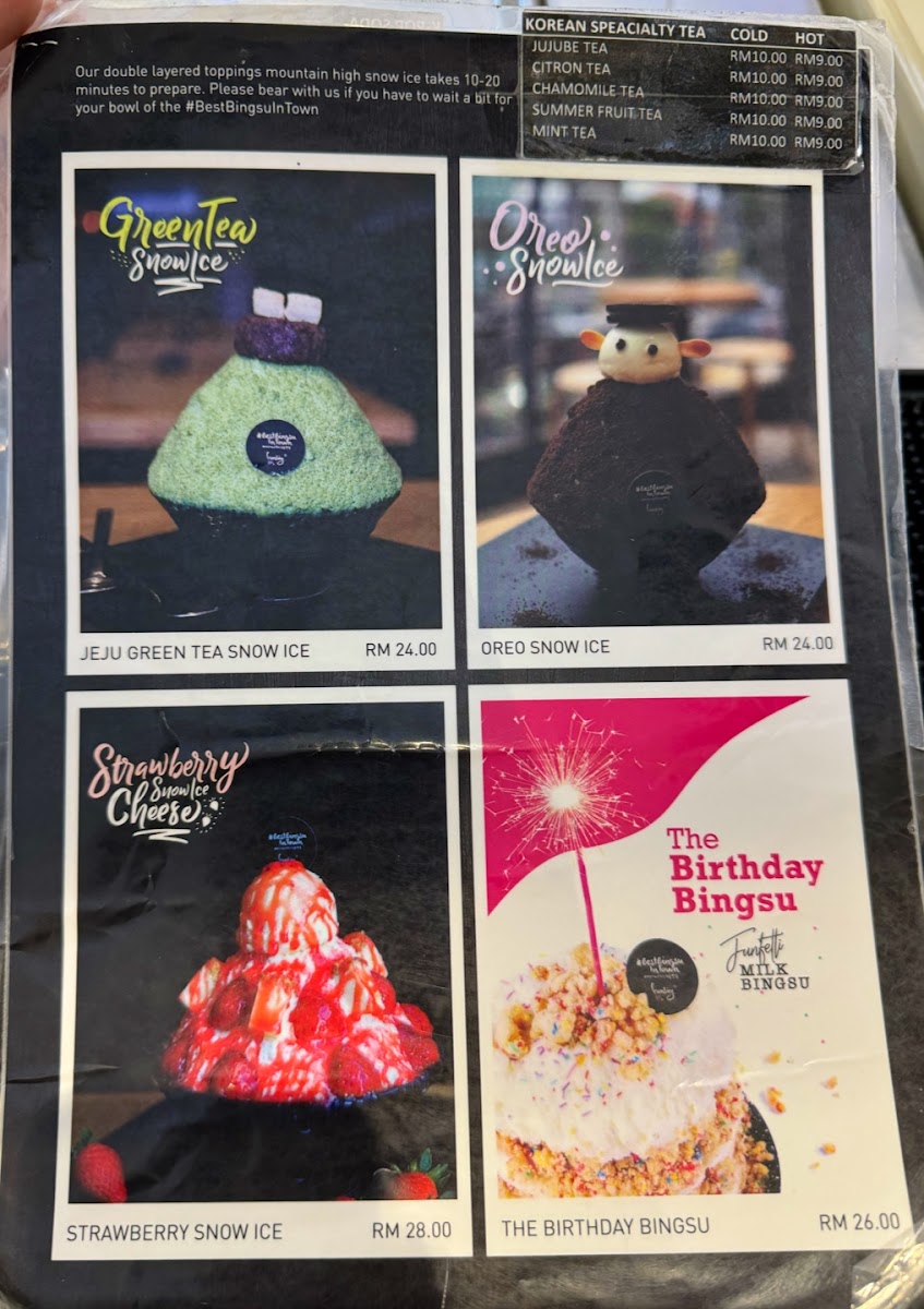 Hanbing Korean Dessert Cafe (KL East Mall) Menu
